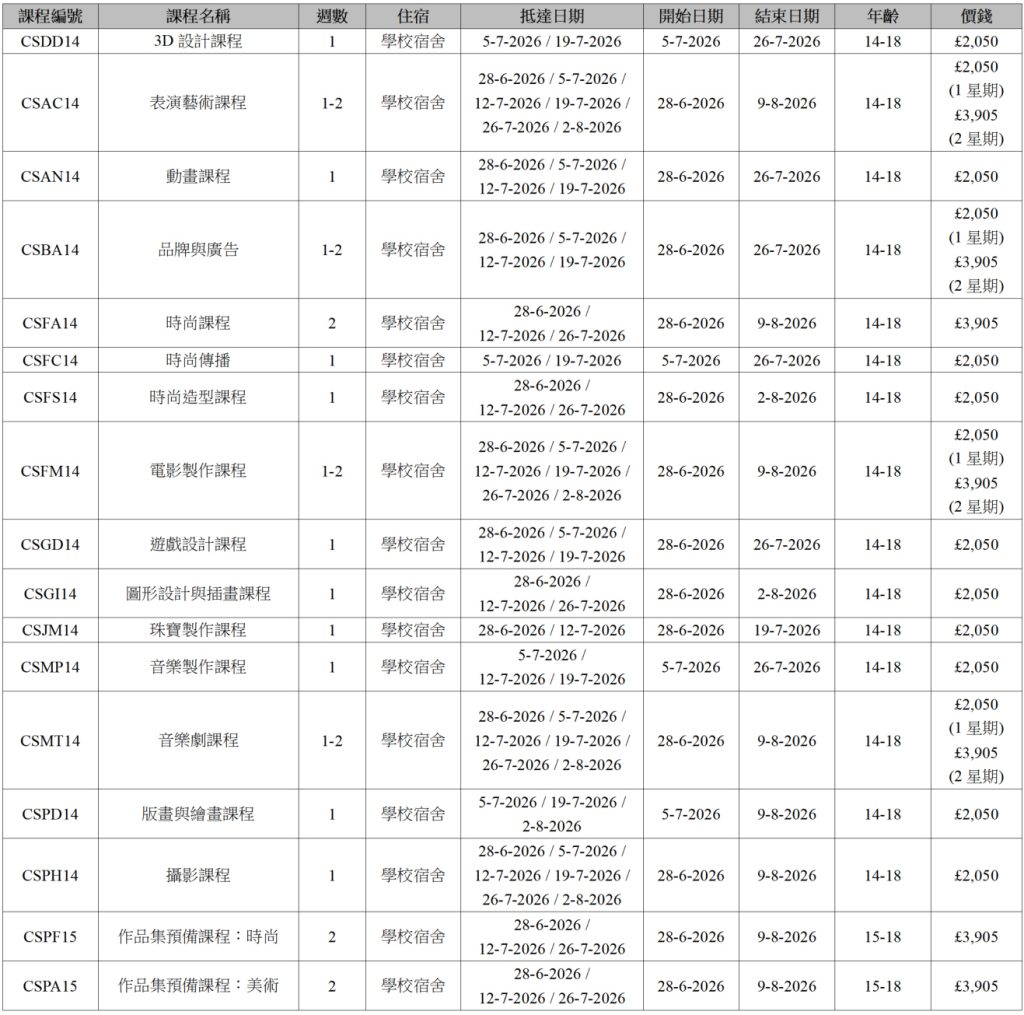 本課程專為15至18歲、有志於申請時尚或藝術設計院校的學生量身打造,由具備業界經驗的專業導師在小班制環境中授課。學員將深入探索時尚設計、造型、傳播、編輯及縫紉機操作等多元領域,學習如何從靈感蒐集、創作過程到最終作品,打造一本能夠展現個人風格與藝術潛力的獨特作品集。課程包含25小時以上的實作工作坊,並將倫敦作為教室,透過導覽參觀博物館與文化地標汲取創作養分;晚間則安排社交活動,讓學員在友善氛圍中結交新朋友。在全英語環境中沉浸式學習,完成課程後不僅能建立一本極具競爭力的作品集,更能為未來銜接倫敦藝術大學認證的延伸文憑或預科文憑課程奠定扎實基礎。