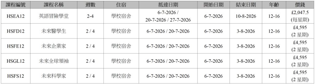 (費用涵蓋課堂學習、活動、教材、證書、住宿、膳食、遊覽及基本保險,但不包括機票、醫療及行政費等項目。)