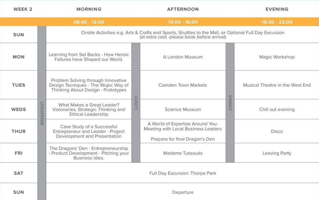 (The fee covers classroom learning, activities, course materials, certificates, accommodation, meals, excursions, and airport transfers, but does not include insurance, airfare, medical, and administrative fees.)
